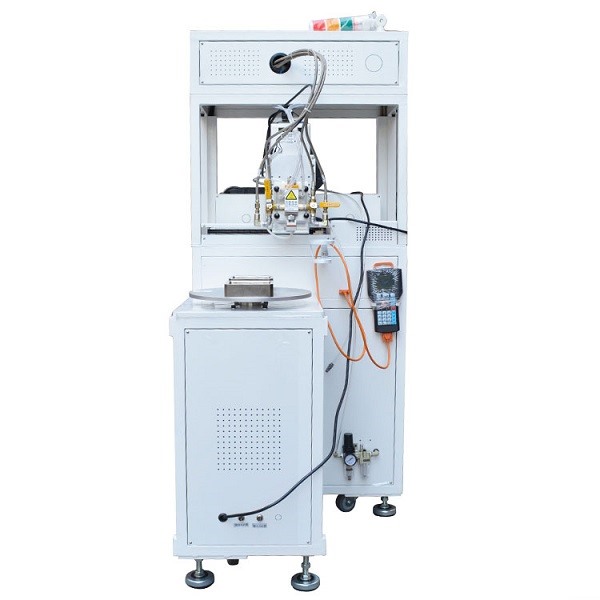 3、配膠部分操作簡便,您只需把AB膠分別倒進相對應的料桶里面,然后在PLC觸摸屏里設置好灌膠程序,按一鍵啟動,機器便可自動灌膠,每個產(chǎn)品灌多少,機器就自動配多少,有效節(jié)約膠水;