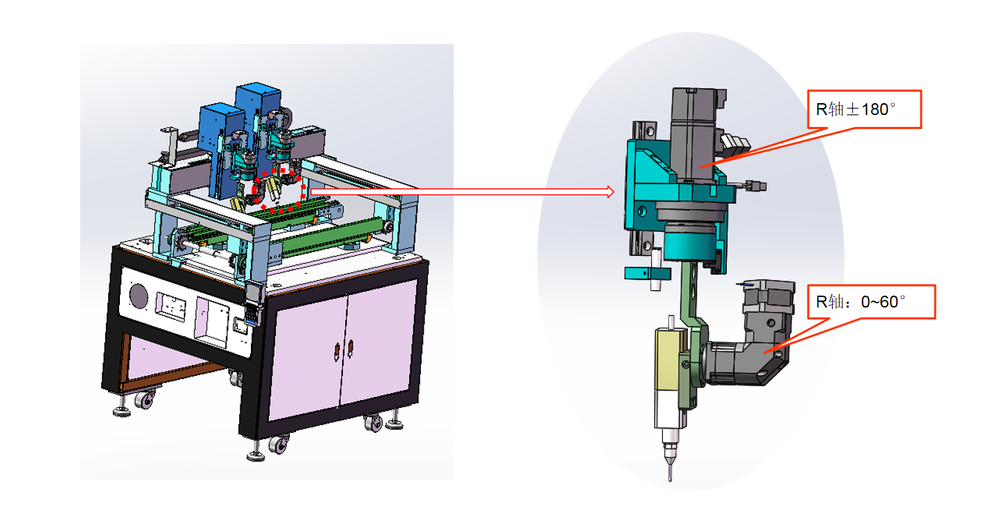 X250*Y350*Y120mm,R、V軸可旋轉(zhuǎn)0~180°,U\W軸可擺動0~60° |