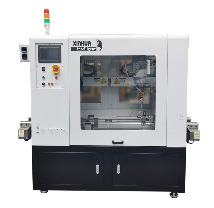 原理說明:自動流水線點膠機能與客戶的流水線前后可靠對駁接,流水線自動點膠機安裝有產(chǎn)品阻擋機構(gòu)A和B,當流水線自動點膠機紅外線系統(tǒng)感應(yīng)到產(chǎn)品到來,自動啟動阻擋機構(gòu)A和B擋住產(chǎn)品,并同時啟動流水線自動點膠機,對產(chǎn)品進行點膠,當流水線自動點膠機點膠完成后,自動開啟阻擋機構(gòu),產(chǎn)品自動流入客戶流水線,點膠完成。